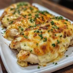 Pop the baking dish into your preheated oven and bake for 25-30 minutes. Keep an eye on it! You’ll know it’s done when the chicken is cooked through and the top is golden brown. To check for doneness, you can use a meat thermometer; the internal temperature should reach 165°F (75°C). This ensures your chicken is safe to eat and perfectly juicy!