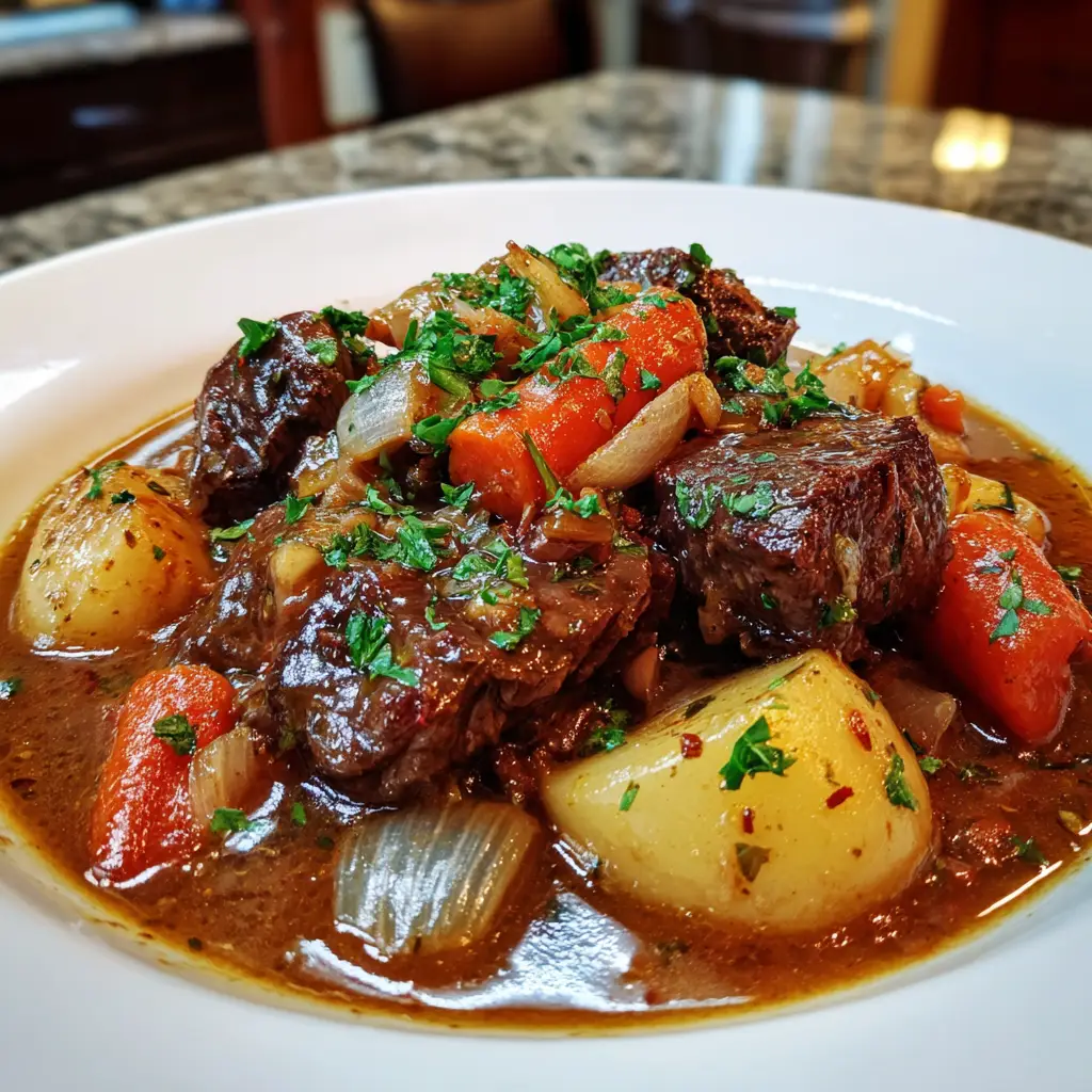 A hearty and comforting beef stew that features perfectly tender meat and a rich, flavorful broth.