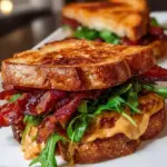 The aroma wafts through the air like an enticing embrace, drawing you closer to the heart of the kitchen, each sizzling strip of bacon promising a symphony of flavor and delight. The moment you catch a glimpse of that golden, crispy bacon curling at the edges, your mouth waters in anticipation. Each bite unfolds a delightful crunch, harmoniously blending with the sweetness of caramelized onions, the smokiness of chipotle mayo, and the freshness of arugula, all enveloped in perfectly toasted bread. This isn’t just a sandwich; it is a celebration of flavors, a dance of textures that brings joy to breakfast or lunch.