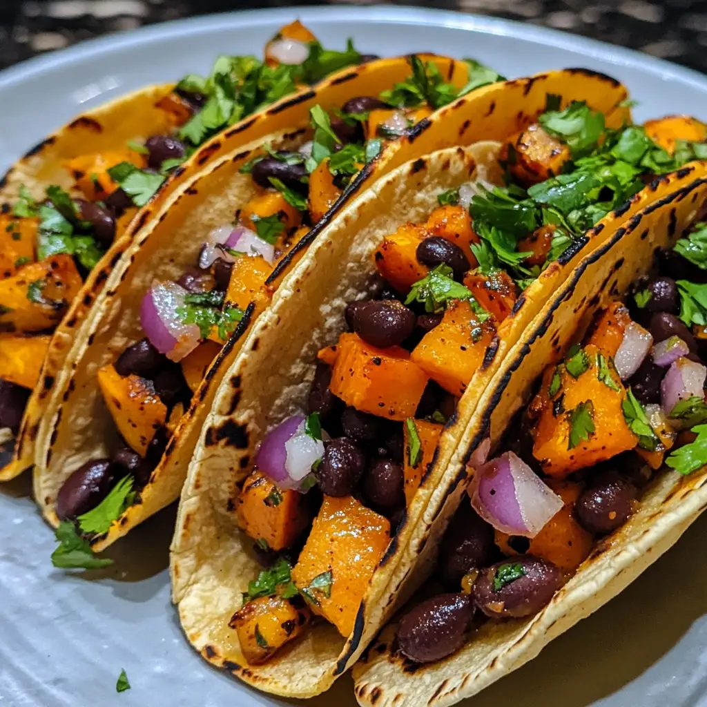 A delicious and healthy recipe for butternut squash tacos filled with black beans, perfect for a flavorful twist on traditional tacos.