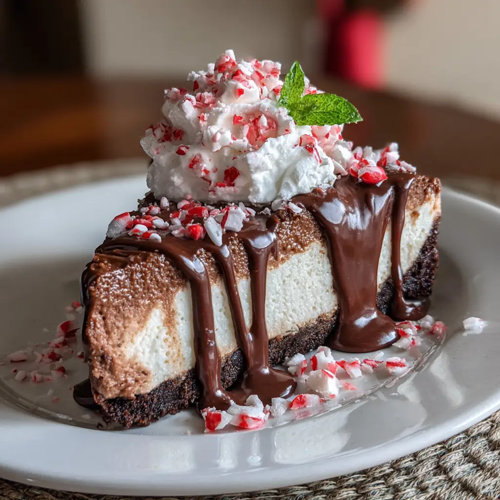 A rich and creamy chocolate peppermint cheesecake that combines the flavors of chocolate and peppermint for a delightful dessert experience.