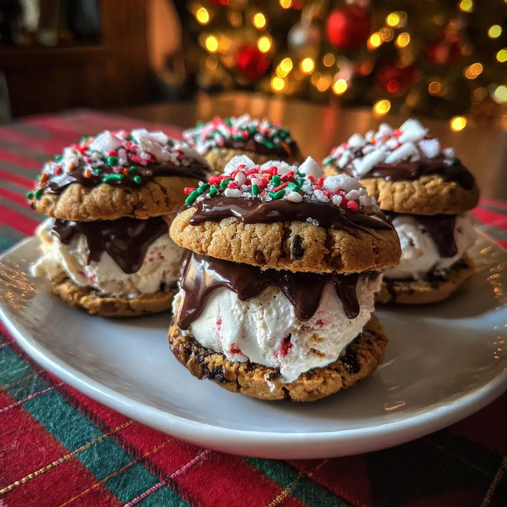 Wrap each sandwich in plastic wrap and freeze for at least one hour before serving. Freezing helps the ice cream firm up, making it easier to eat. When you’re ready to serve, just unwrap and enjoy these delightful Christmas Cookie Ice Cream Sandwiches!