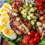 Experience a delightful blend of vibrant greens, stunning toppings, and sumptuous flavors in this refreshing Cobb Salad with Grilled Chicken.