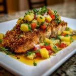 For those who want to get creative, consider marinating the salmon in lime juice for 30 minutes before coating it. This adds an extra layer of flavor! You can also adjust the sweetness of the salsa by adding a drizzle of honey or agave syrup if you prefer. For a complete meal, serve it alongside rice or a fresh salad. Exact quantities for each ingredient are available at the bottom of the article for easy printing!