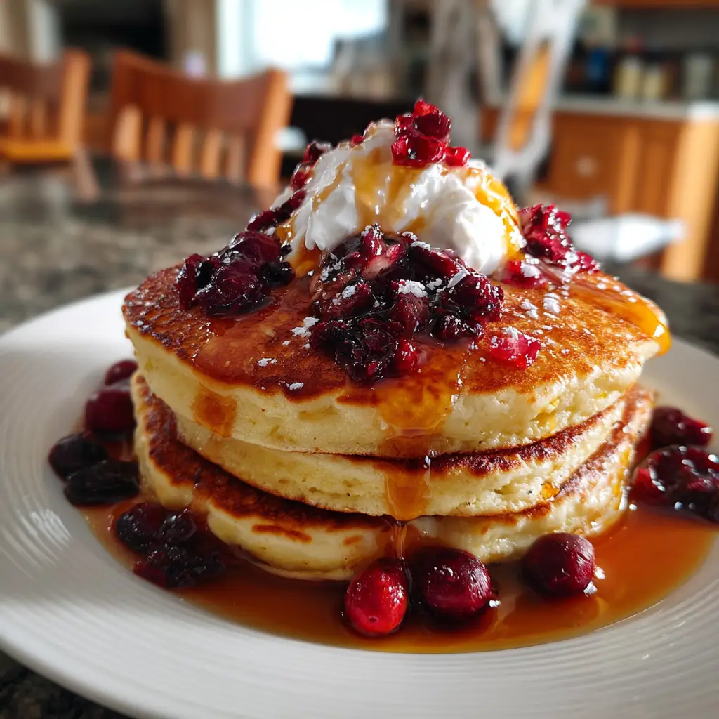 Delicious and fluffy pancakes made with ricotta cheese, fresh cranberries, and a hint of orange zest, perfect for breakfast or brunch.