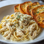 Once everything is ready, it’s time to serve! Plate the creamy chicken Alfredo pasta and place the cheesy Texas toast on the side. This dish is not just a meal; it’s a comforting experience. Enjoy every bite, and don’t forget to share with your loved ones!
