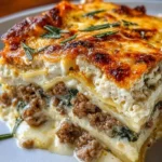 A comforting, low-carb lasagna made with creamy ricotta, ground turkey, and Alfredo sauce, perfect for keto diets.