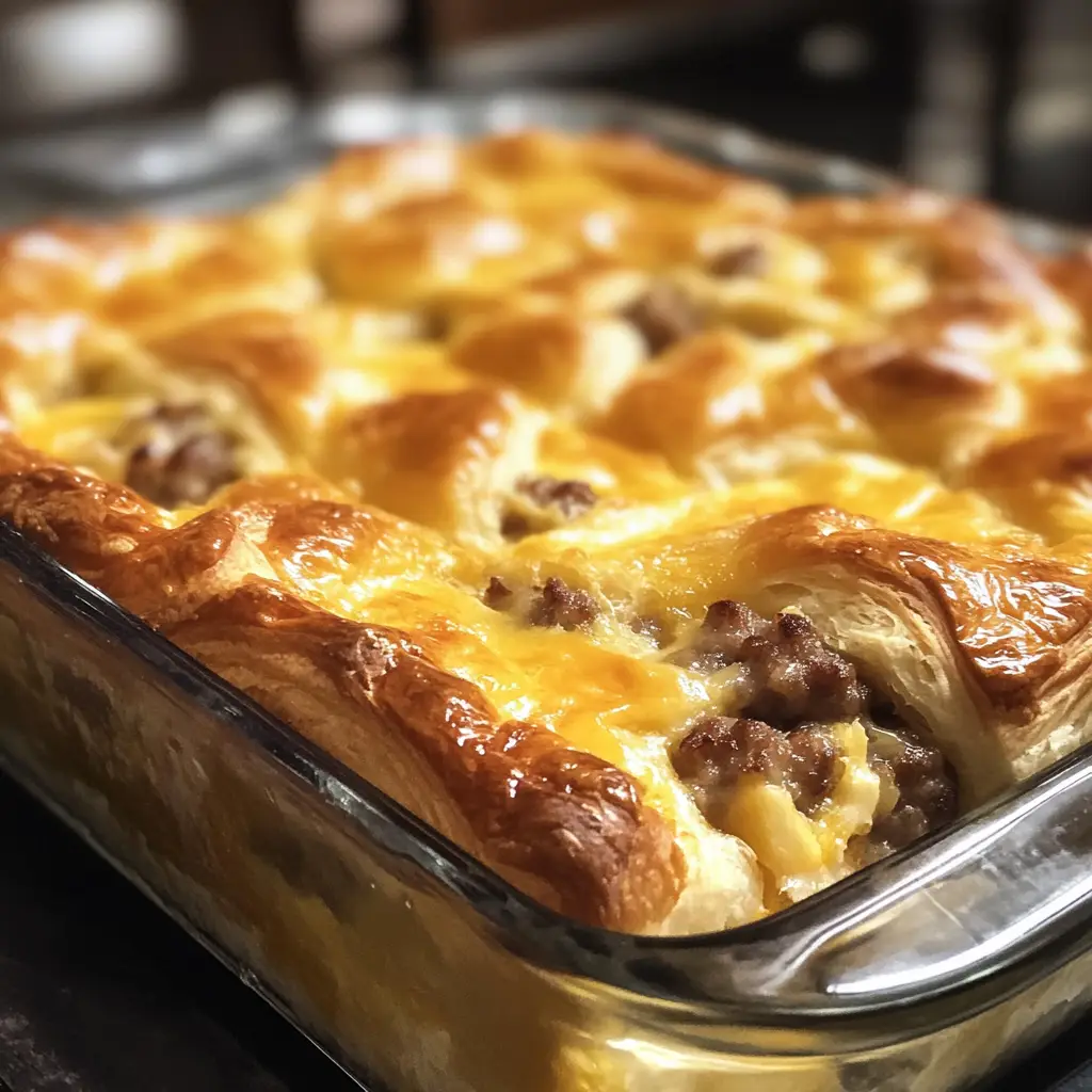 A delicious and easy-to-make breakfast bake featuring crescent rolls, sausage, and cheese.