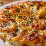 As the oven works its magic, your kitchen fills with the delicious scent of roasted garlic and toasty Parmesan, creating an atmosphere that feels like home. Each forkful offers a symphony of textures: the creamy layers of potato, soft yet firm and perfectly tender, contrast with the crispy, cheese-laden top that promises an irresistible crunch. The first bite delivers a warm hug of flavor—a heavenly balance of savory, buttery cream and the gentle herbaceous notes of thyme, soothing the soul. With every layer crafted using love and attention, you realize this dish has become more than just food; it’s a celebration.