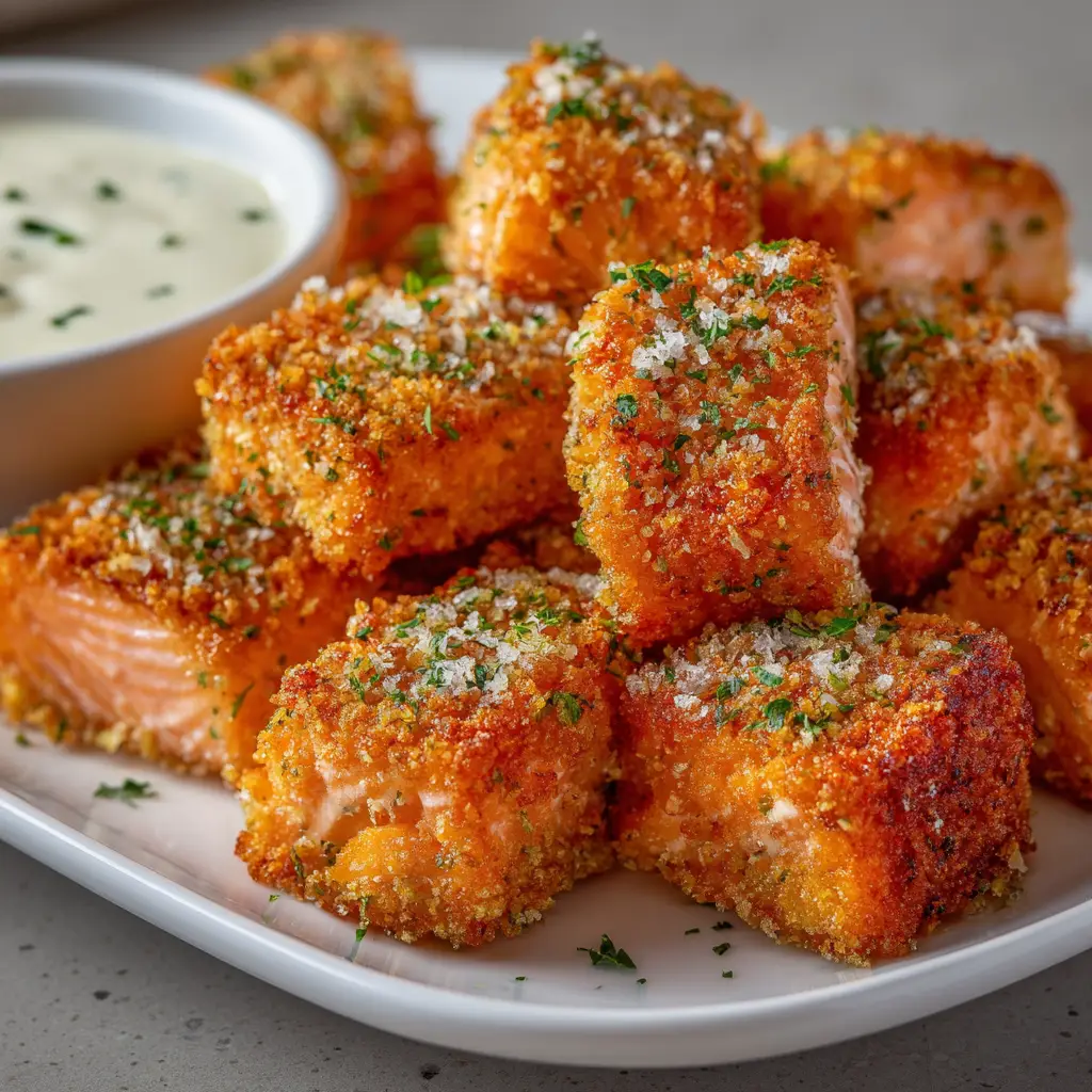 Introduction to Crispy Salmon Bites with Garlic Cream Sauce