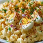 There’s something undeniably comforting about a bowl of macaroni salad, but when you elevate it to an entirely new level with the deliciousness of deviled eggs, it becomes a vibrant celebration of flavor and nostalgia. Picture this: creamy elbow macaroni gently tossed with chopped hard-boiled eggs, crisp celery, and zesty red onion, all enveloped in a luxuriously rich dressing that strikes the perfect balance between tangy and savory. Each bite bursts with the richness of mayonnaise and the subtle warmth of mustard, inviting your taste buds on a delightful journey.