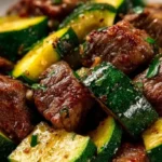 Bite into these tender morsels, and you’ll experience an explosion of flavors that dance and harmonize. The juicy, perfectly seared steak melts in your mouth, boasting a deliciously charred exterior that gives way to that succulent, flavorful interior. Each piece enveloped in creamy garlic butter adds a luxurious finish, while the zucchini, with its tender-crisp texture, complements the richness with a vibrant crunch. This isn’t just dinner; it’s a celebration of simple, fresh ingredients coming together to create a memorable experience.