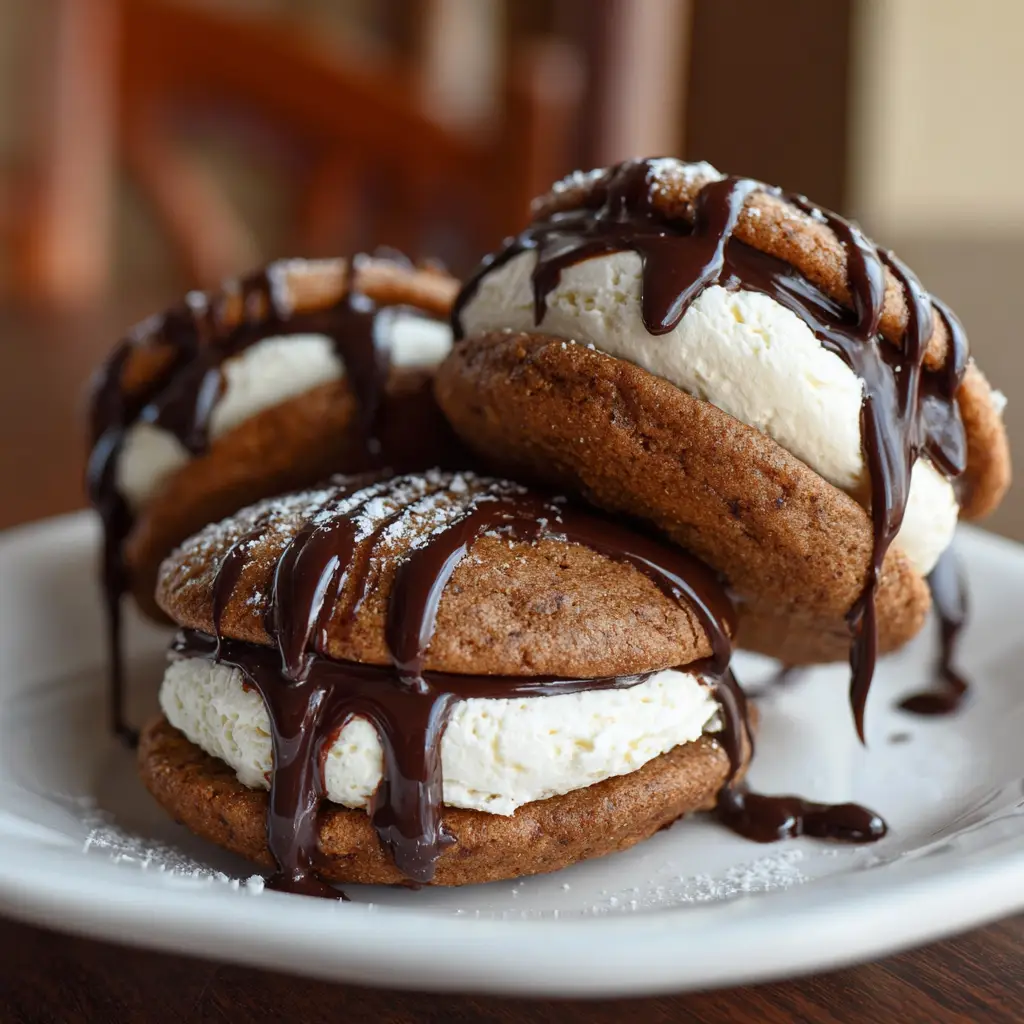 Gingerbread Whoopie Pies are a delightful holiday treat featuring soft gingerbread cookies filled with a creamy filling, perfect for festive gatherings.