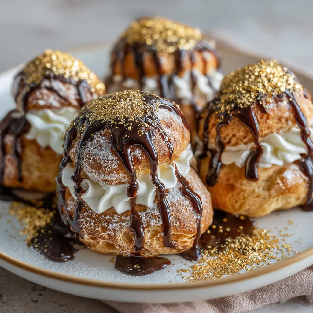 Gold-Dusted Chocolate Profiteroles: Indulge in Luxury!