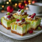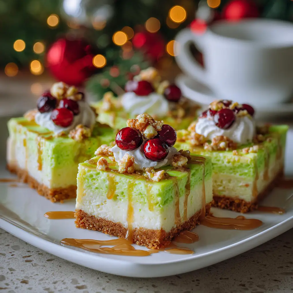 Keywords: Grinch Cheesecake Bars, festive dessert, holiday treats, Christmas recipes