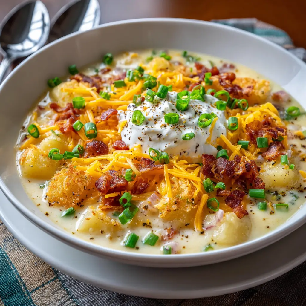 A warm and comforting hash brown potato soup that is perfect for chilly days.