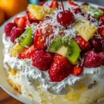 This salad is versatile, too! It serves equally well as a sumptuous dessert at family gatherings, a fun treat at summer barbecues, or a light snack to satisfy that sweet tooth. Not only does it present a feast for the eyes with its inviting colors, but it also offers health benefits from the fresh fruits—packed with vitamins and antioxidants, they add a burst of nutrition alongside your delightful indulgence.