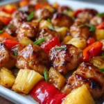 A succulent one-pan meal featuring juicy chicken thighs, bell peppers, and pineapple, roasted to perfection for a delightful Hawaiian-inspired experience.