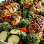 Assemble the Bowl: After resting, slice the chicken breasts into strips. Divide the cooked veggies into bowls, top with the sliced chicken, then drizzle with lemon juice. Garnish generously with fresh herbs and a sprinkle of chili flakes if you’re feeling adventurous.