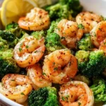 A vibrant dish featuring sautéed shrimp and broccoli in a buttery garlic sauce, perfect for quick weeknight dinners.