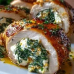 Delicious chicken rolls stuffed with creamy herbed ricotta and fresh spinach, baked to golden perfection.