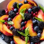 - Combine the Base: In a large mixing bowl, combine the sliced peaches, blackberries, blueberries, and pomegranate seeds. Gently fold them together.