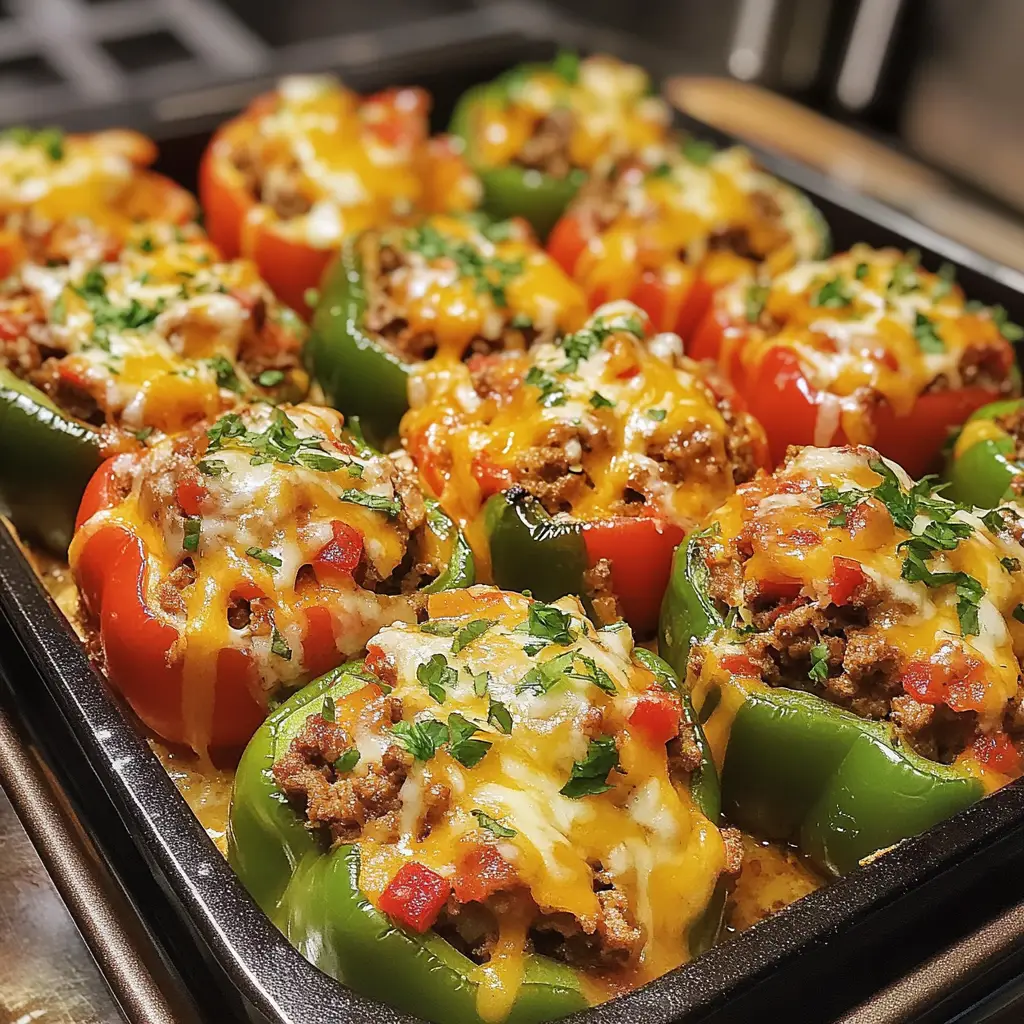 Loaded Nacho Stuffed Peppers are a delicious and fun twist on traditional nachos, featuring bell peppers filled with a savory mixture of ground meat, cheese, and nacho toppings.