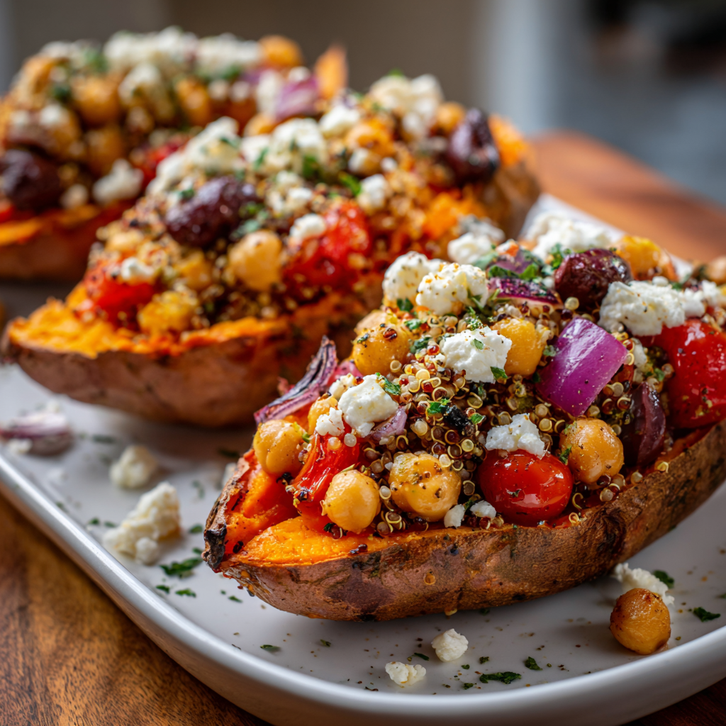 Mediterranean Stuffed Sweet Potatoes are a delicious and healthy dish filled with vibrant flavors and nutritious ingredients, perfect for a satisfying meal.