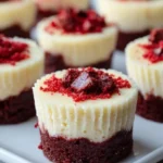 With their vibrant red hue and velvety composition, these Mini Cheesecakes with Red Velvet Brownie Base are perfect for any occasion. Whether it’s a festive holiday gathering, a birthday party, or simply a cozy night at home, these little heart-stealers bring joy not just to the palate but also to the eyes. Picture serving them up on a beautiful platter, their rich color contrasting with the creamy white cheese topping—just beautiful enough to make you hesitate before taking that first bite. But don’t worry; you’ll soon find it hard to resist!