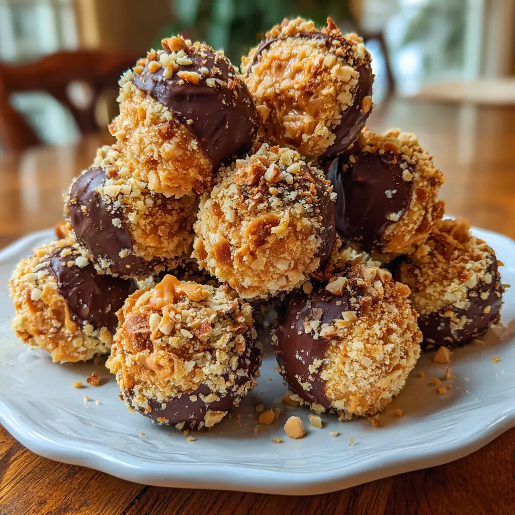 Delicious no-bake truffles made with Butterfinger candy bars, caramel, and a crunchy coating.