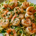 A light and elegant dish featuring plump shrimp and spiralized zucchini, drizzled with a buttery lemon garlic sauce.