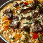 Imagine the first forkful—warm, inviting, creamy, and slightly spicy with just the right crunch mingling in the background. The richness of queso envelops tender, juicy steak while each grain of rice soaks up the delicious chicken broth, creating a dish that’s as satisfying as it is simple. Whether you seek to impress at a gathering or craving a comforting solo dinner, this dish beckons, offering multiple layers of taste and texture that linger long after the last bite. Dive into this culinary adventure of flavors that come together in perfect embrace, making every meal a cherished memory.