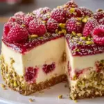 The moment you slice into a Pistachio Raspberry Crunch Cheesecake, your senses awaken to a symphony of flavors and textures that dance harmoniously on your palate. Picture this: you plunge your fork into the creamy, velvety surface, revealing layers that beckon beneath. The first bite delivers an explosion of rich cheesecake, touched with a hint of vanilla, while bursts of vibrant raspberries and the delightful crunch of pistachios elevate the experience to blissful heights. Each mouthful unravels a delightful interplay between creamy and crunchy, sweet and tangy, creating a dessert that feels both luxurious and comforting at once.