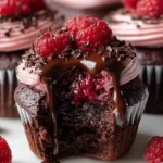 Indulge in these rich Raspberry Chocolate Lava Cupcakes that feature a melting center with tangy raspberries and topped with a silky raspberry buttercream.