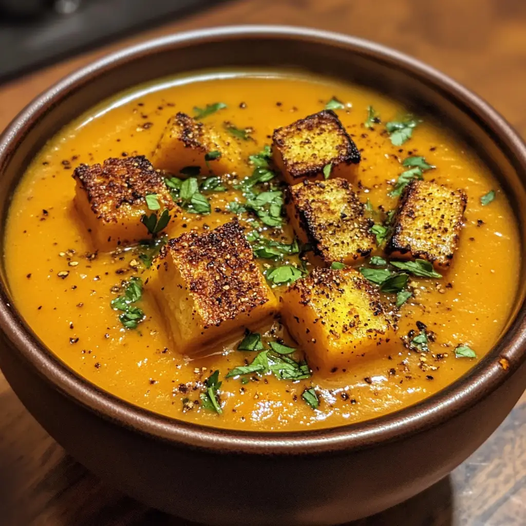 A creamy and flavorful roasted pumpkin soup that is perfect for fall and winter seasons.