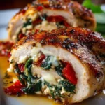The aroma wafts through your kitchen, an irresistible blend of savory garlic, sweet roasted red peppers, and fresh spinach, all promising a comforting meal that feels like a warm hug. Imagine slicing into a succulent chicken breast, revealing a treasure trove of vibrant greens and creamy mozzarella nestled within—a dish that not only tantalizes your taste buds but also fills your home with an inviting warmth. In that moment, you realize this isn’t just a meal; it’s a celebration of flavor and nostalgia, a simple yet stunning dish that transforms a regular dinner into a special occasion.