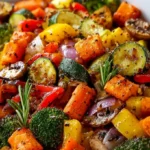 Keywords: roasted vegetables, healthy side dish, vegan recipes, vegetable medley