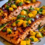 This dish isn’t just about taste; it’s an experience. The moment your fork pierces through the salmon’s flaky exterior, the flakiness breaks apart effortlessly, revealing that warm, tender pink flesh inside. Each mouthful radiates the warmth of home, a gentle reminder that good food nourishes not only the body but also the soul. With a simple yet elegant presentation, a finished plate of Salmon with Mango Salsa invites friends and family to gather around, share stories, and savor every delightful bite.