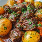Serve and Enjoy: Carefully transfer the beef and potatoes onto a serving platter. Spoon that extra sauce generously over them, sprinkle with fresh parsley for a pop of color, and bask in the delight of your culinary creation!