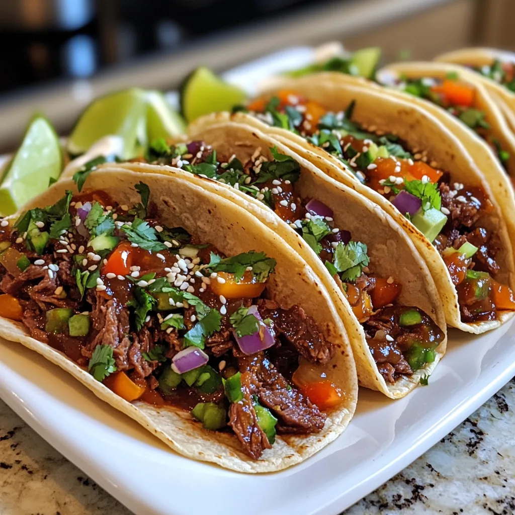 Spicy Korean BBQ Beef Tacos are a delicious fusion dish that combines the bold flavors of Korean BBQ with the convenience of tacos, perfect for a quick and satisfying meal.