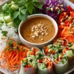 A skillfully crafted spring roll salad with peanut dressing tantalizes the senses, offering a delightful explosion of fresh flavors and vibrant colors. Visualize a medley of crisp cabbage and bright bell pepper mingling with the cool crunch of cucumber, adorned with fresh herbs of cilantro and mint. The aroma dances through the air as the rich, nutty scent of peanut butter and the tang of lime weave together in the dressing, promising a decadent, creamy embrace for every bite.