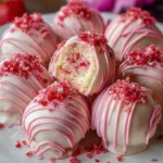 Delight in these creamy Strawberry Shortcake Cheesecake Truffles that blend the flavors of cheesecake and strawberries in a delightful confection.