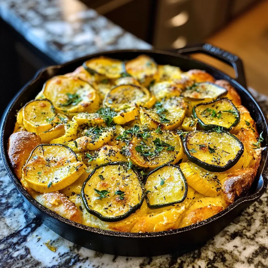 A delightful skillet bread made with summer squash and fresh herbs, perfect for a light meal or side dish.