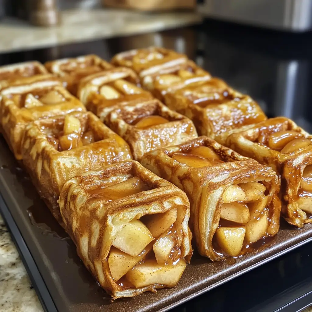 Sweet Apple Waffle Roll-Ups are a delightful dessert made with crispy waffles filled with sweet apple filling, perfect for breakfast or a snack.