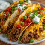 Now comes the fun part! Take a warm tortilla and lay it flat on a plate. Spoon a generous amount of the beef mixture onto one half of the tortilla. Then, sprinkle shredded cheddar cheese, diced tomatoes, and chopped green onions on top. Don’t be shy—layer it up! Fold the tortilla in half to create a pocket of deliciousness.