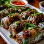 Delicious Thai Basil Beef Rolls filled with aromatic flavors and fresh ingredients, perfect for an appetizer or main course.