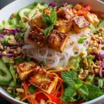 After a long day, there’s nothing quite like the soothing embrace of a vibrant, colorful salad that bursts with flavor and crunch. The Tofu Spring Roll Salad is not just a meal; it’s an experience that dances on your taste buds and wraps you in a gentle hug of freshness and satisfaction. Picture this: silky rice vermicelli noodles mingle with crisp lettuce, succulent tofu, and an array of fresh vegetables. Each bite reveals an explosion of tastes, from the nutty crunch of peanuts to the garden-fresh pop of mint and cilantro. The aroma wafts through your kitchen, teasing you with promises of an indulgent yet light dish that nourishes both body and soul.