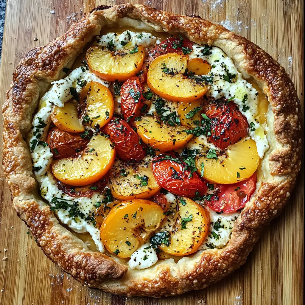 PrintTomato Peach Burrata Bread Tart: A Must-Try Recipe Today!