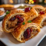 Turkey & Cranberry Sausage Rolls are a delightful festive treat, combining savory turkey sausage with sweet cranberries, all wrapped in flaky pastry.