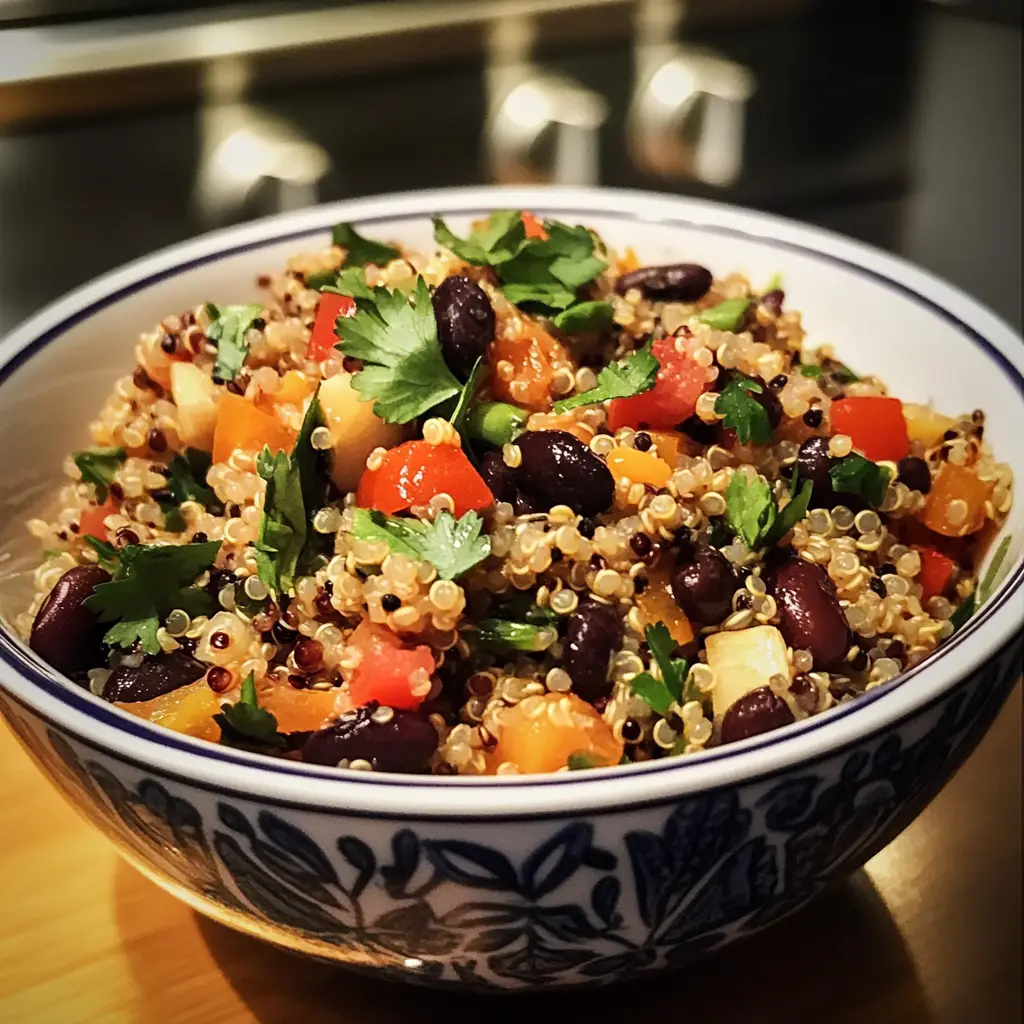 A refreshing and nutritious salad made with quinoa, black beans, and a zesty dressing, perfect for a light meal or side dish.